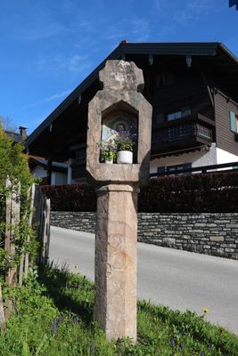 Bildstock Unterbichler Straße, Reit im Winkl, bildstock aus Rotmarmor, sog. "Pestsäule", angeblich 1634.
