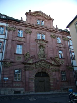 Ehemaliges Jesuitenkolleg, jetzt Bischöfliches Klerikalseminar, dreiflügelanlage über dreieckigem Grundriss, Nordflügel 1715–1719 von Joseph Greising, Westflügel 1724–1729 von Balthasar Neumann, Südflügel 1788; zugehörig die Michaelskirche (Neubaustraße 13)