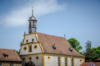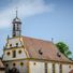 St. Bartholomäus, Saalbau mit Walmdach, geschweifter Giebelfassade und Dachreiter mit Glockendach, Werksteingliederungen in Sandstein, 1685-86; an der Straßenseite Rundturm der Schlossmauer integriert; mit Kirchenausstattung
