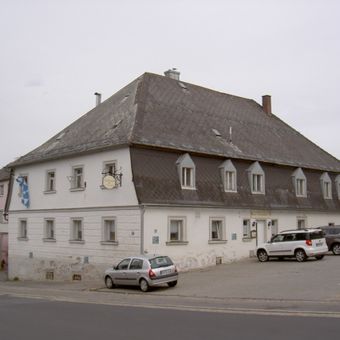 Gasthof, bezeichnet „1707“, Walmdachbau mit Seitenmansarden
