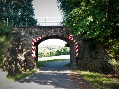 Eisenbahnbrücke Vorwerkstraße, Einbogige Sandsteinquaderbrücke, baugeschichtlich und landschaftsprägend von Bedeutung