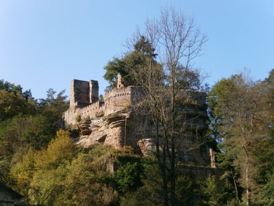 Die Burgruine und der umgebende Garten repräsentieren die Architektur und Gartentraditionen des mittelalterlichen deutschen Adels in der Pfalz.