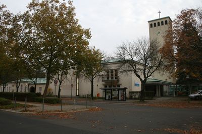 Die Weihnachtskirche ist ein Kirchengebäude mit protestantischem Ursprung in der Spandauer Gegend von Berlin. Das Bauwerk zeigt klare geometrische Formen mit kubischen Elementen, einem schlanken Glockenturm und einem Vorhof am Eingang.