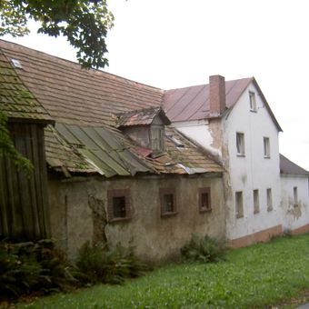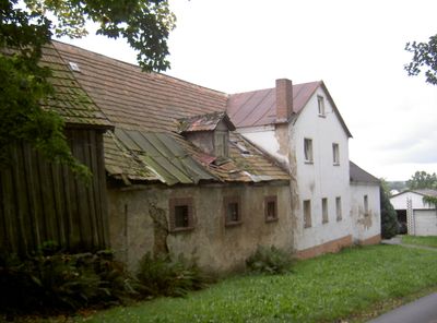 Ehemaliges Wohnstallhaus eines Vierseithofes, eingeschossiger Massivbau mit Satteldach und Umschrot, zweite Hälfte 18. Jahrhundert, Erweiterung mit abgeschlepptem Anbau und Mittelrisalit Anfang 20. Jahrhundert