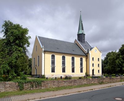 Sachgesamtheit Dorfkirche und Kirchhof Naundorf, mit folgenden Einzeldenkmalen: Kirche, Leichenhalle, Kriegerdenkmal für Gefallene des Ersten Weltkrieges und Gedenktafel für die Gefallenen des 2. Weltkrieges, Kirchhofsmauer, VDN-Gedenkstein und Ste