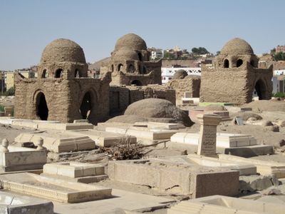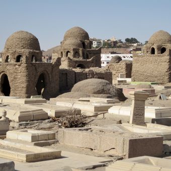 Der Fatimiden-Friedhof erstreckt sich über 96 Hektar und enthält 30 erhaltene Kuppelgräber aus Lehmziegeln mit vorstehenden Ecken, die die Architektur Südägyptens repräsentieren.