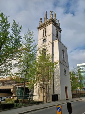 Das ursprüngliche Gotteshaus wurde erstmals im 12. Jahrhundert erwähnt und nach dem Großen Brand von 1666 von Christopher Wren zwischen 1686 und 1689 wieder aufgebaut. Der Turm blieb bestehen, während das Hauptgebäude 1871 abgerissen wurde.