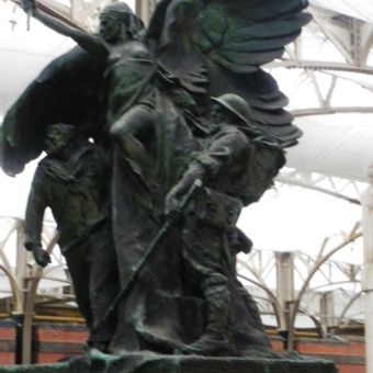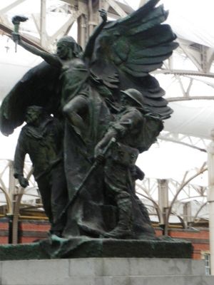 William Charles Holland King schuf Bronzefiguren, die die Verbindung zwischen zivilen Eisenbahnarbeitern und Militärdienst während der Kriegsoperationen zeigen.