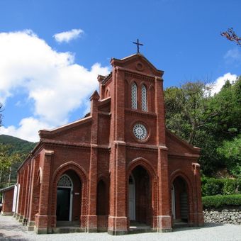 Die Dōzaki-Kirche ist ein Backsteingebäude mit gotischen Merkmalen auf der Insel Fukue, darunter Spitzbögen, Gewölbe und hohe Fenster in massiven Wänden. Das Innere beherbergt Ausstellungen zu Artefakten und Dokumenten aus der Vergangenheit der Region.