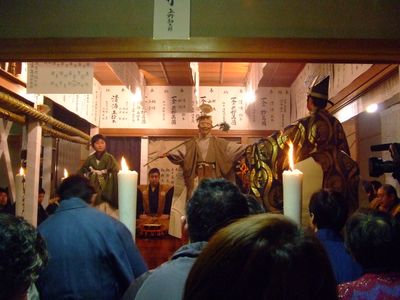 Die beiden lokalen Theatergruppen Kamiza und Shimoza führen ihre Aufführungen in der gleichen Familie durch, wobei die Rollen von Generation zu Generation weitergegeben werden. Das Publikum sieht hier Schauspieler, die gleichzeitig ihre Familie und ihre Gemeinde auf der Bühne repräsentieren.