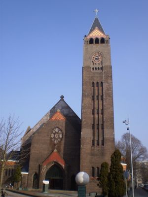 Architekt Jos Bekkers entwarf die Kirche 1924 und schuf ein Gebäude, in dem jeder Teil des Altars ohne strukturelle Hindernisse sichtbar bleibt.