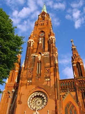 Das Ziegelgebäude erstreckt sich über 68 Meter Länge, 30 Meter Breite und erreicht eine Höhe von 86 Metern in der schlesischen Region.
