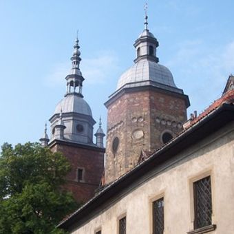 Die Kirche wurde 1448 von Bischof Zbigniew Oleśnicki zur Stiftskirche erhoben und erfuhr im 15. Jahrhundert bedeutende Umbauten mit zwei Türmen.