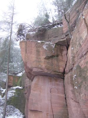 Der Berg wurde vom Mittelalter bis 1975 als Steinbruch für die Gewinnung von rotem Sandstein genutzt, aus dem Bildhauer, Kantensteine und Mühlsteine hergestellt wurden. Die lange Geschichte der Steingewinnung an diesem Ort hat die heutige Gestalt der Felswände geprägt.
