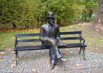 Bolesław Prus bench in Nałęczów, Bronzeskulptur im Nałęczów Park, Polen