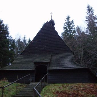 Die Heilig-Kreuz-Kirche steht auf 743 Metern Höhe und wurde vollständig aus Holz nach traditionellen schlesischen Architekturprinzipien und Methoden erbaut.