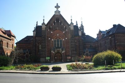 Die Kirche in der Zamoyskiego-Straße 2 verfügt über einen umliegenden Park mit Bänken und einem Spielplatz für Gemeindeversammlungen.