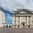 Die St.-Anna-Kirche zeigt eine klassizistische Fassade nahe dem Schlossplatz, mit Zwillingstürmen und architektonischen Details an den Außenwänden.