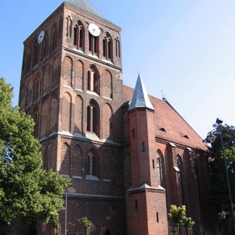Die Sankt-Marien-Kirche zeigt Spitzbögen und Rippengewölbe, vollständig aus Ziegeln in mittelalterlicher gotischer Architekturtradition erbaut.