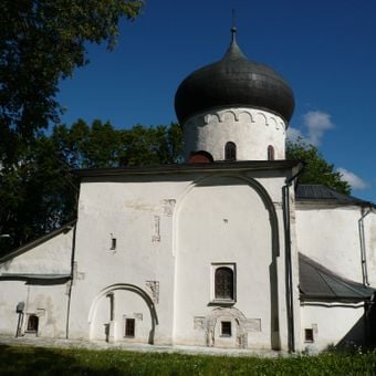 Die Kathedrale bewahrt ihre ursprünglichen byzantinischen Bauweisen, die vor der Entwicklung des regionalen Pskower Architekturstils entstanden sind.