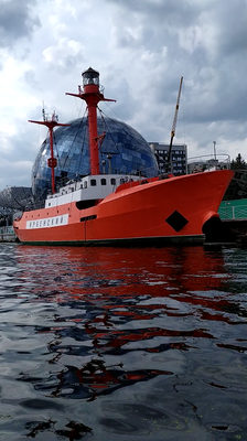 Das Schiff zeigt maritime Kunstsammlungen und Bildungsausstellungen über Leuchttürme der Ostsee in mehreren Ausstellungsräumen.