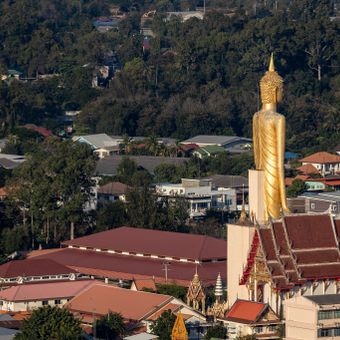 Die stehende Buddha-Statue, bekannt als Phra Phuttha Rattana Mongkhon Mahamuni, zeigt eine spezifische Handposition namens Pang Prathan Phon.