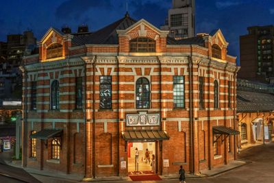 Das Red House Theater ist ein historisches Gebäude in Ximending, Taipei, das eine achteckige Haupthalle mit einem kreuzförmigen Anbau verbindet. Die Fassade zeigt westliche und japanische Stilelemente, und ein Platz schließt sich an die Struktur an.