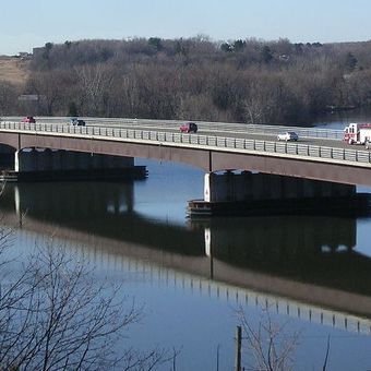 Die Crescent Brücke erstreckt sich über 375 Meter über den Mohawk River und den Erie-Kanal und verbindet Colonie im Albany County mit Halfmoon.
