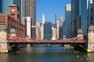 Die La Salle Street Bridge ist eine zweiteilige Balkenbogenbrücke, die den Chicago River überquert und die Near North Side mit der Loop verbindet. Die Struktur wird durch vier charakteristische Kontrollhäuser definiert, die die Bewegungsmechanismen der beiden sich hebenden Brückenblätter steuern.