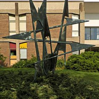Polyphony ist eine Bronzeskulptur an der Universität von Wisconsin-Milwaukee, die aus ineinander verwobenen geometrischen Elementen besteht. Lange Stangen und dreieckige Formen bilden eine komplexe, labyrinthähnliche Struktur, die von einem zentralen Punkt nach oben wächst.