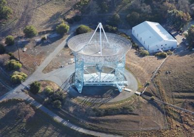 Der Stanford Dish ist ein großes Radioteleskop auf einem Hügel in Kalifornien, das aus einer riesigen schüsselförmigen Struktur besteht, die sich je nach Bedarf in verschiedene Richtungen bewegen kann. Die Konstruktion misst etwa 46 Meter im Durchmesser und sitzt auf einer flexiblen Betonschale, die es dem Teleskop ermöglicht, verschiedene Teile des Himmels zu beobachten.