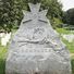 Der graue Granitblock zeigt ein Malteserkreuz an der Spitze und Palmzweige im Flachrelief auf seiner Vorderseite.