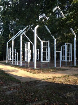 Polegreen Church ist ein archäologischer Ort in Hanover County, wo Stahlrahmen die ursprünglichen Umrisse des Kirchengebäudes markieren. Der Grundriss zeigt die Abmessungen dieser frühen Kultstätte im Freien.