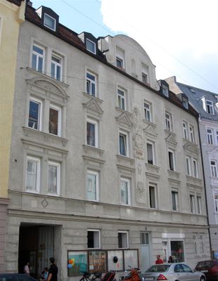 Mietshaus, Neubarock, mit reichem Stuckdekor, bez. 1898, von Rosa Barbist.