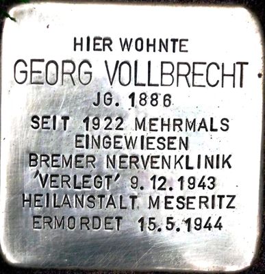 Stolperstein für Georg Vollbrecht, Stolperstein in Bremen-Neustadt