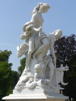 Allegorie der Erde oder Triptolemos lehrt Ceres das Pfügen, Kopie von Wolfgang Wille nach François Gaspard Adam, Park Sanssouci, Französisches Rondel