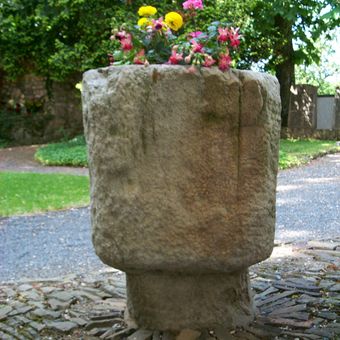 Romanisches Taufbecken von Eschfeld, Menhir in Eschfeld im Eifelkreis Bitburg-Prüm in Rheinland-Pfalz