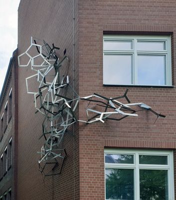 Künstlerische Gestaltung eines biochemischen Vorgangs in Edelstahl, Skulptur von Dietrich Klakow im Berliner Ortsteil Steglitz