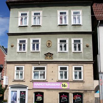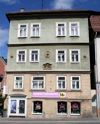 Baudenkmal D-4-63-000-395 in Coburg im Ortsteil Coburg, Wohn- und Geschäftshaus, viergeschossiger Walmdachbau in Ecklages, Erdgeschoss und erstes Obergeschoss in Quadermauerwerk, 18./19. Jh., die beiden anderen Obergeschosse in moderner Fachwerkkonstruktion, Ladeneinbau und Umbau 1870/77, aufgestockt 18