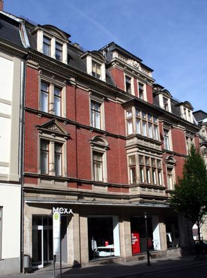 Baudenkmal D-4-63-000-356 in Coburg im Ortsteil Coburg, Wohn- und Geschäftshaus, dreigeschossiger Mansarddachbau, Ziegelmauerwerk mit Sandsteingliederung, mit Mittelrisalit, zweigeschossigem Konsolerker, zweigeschossiger Anbau mit Satteldach an der Rückseite, Renaissanceformen, von Johannes Köhler, bez.