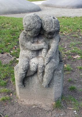 Puttengruppe mit zwei Hasen, Figurengruppe im Kleinen Tiergarten in Berlin-Moabit