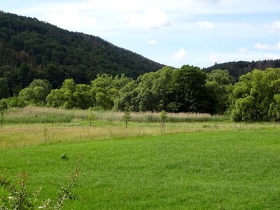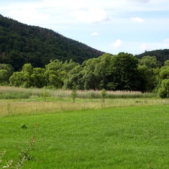 Schilffläche mit angrenzenden Feuchtwiesen bei Kleinern, Naturdenkmal eines Biotops östlich von Kleinern, Hessen