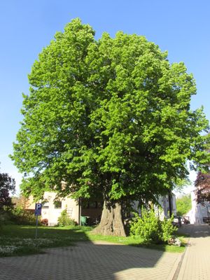 Linden Kilianskirche 2, Naturdenkmal aus zwei Linden am zweiten Standort südlich und nordwestlich der Kilianskirche in Korbach, Hessen