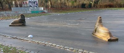 Zwei Seelöwen, Skulpturengruppe an der Plansche am Weißen See in Berlin