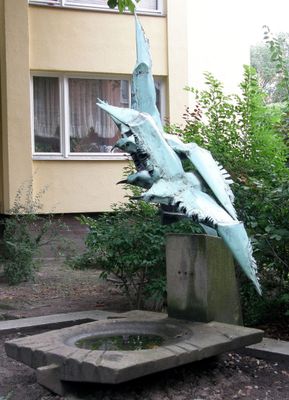 Möwenbrunnen, Skulptur von Paul Ohnesorge mit Vogeltränke in Berlin-Kreuzberg
