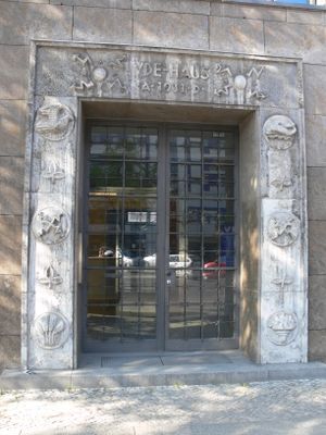 Vier Elemente, Bauplastik am Eingang zum VDE-Haus in Berlin-Charlottenburg