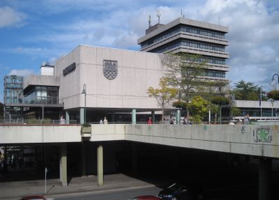 Städtische Dienste, einschließlich Einwohnermeldeamt, Bauamt und Sozialamt, arbeiten von diesem Verwaltungszentrum aus.