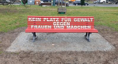 Rote Parkbank auf dem Grazer Platz, Mahnmal gegen Gewalt gegen Frauen und Mädchen in Berlin-Schöneberg