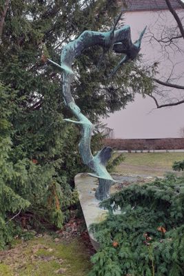 Fliegende Kraniche, Brunnenfigur von Erich Fritz Reuter in Berlin-Tempelhof