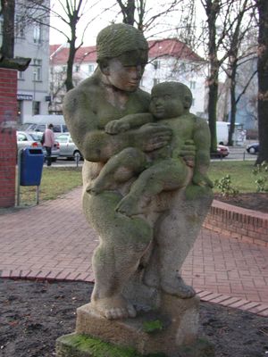 Mutter mit Kind, Skulptur von Dietrich Grüning in Berlin-Rummelsburg